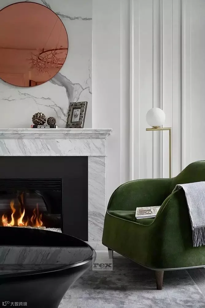 白色的欧式纹样作为文化的肌里,颜色和时代感俱佳的现代家具,共同体现出当代艺术的室内氛围。