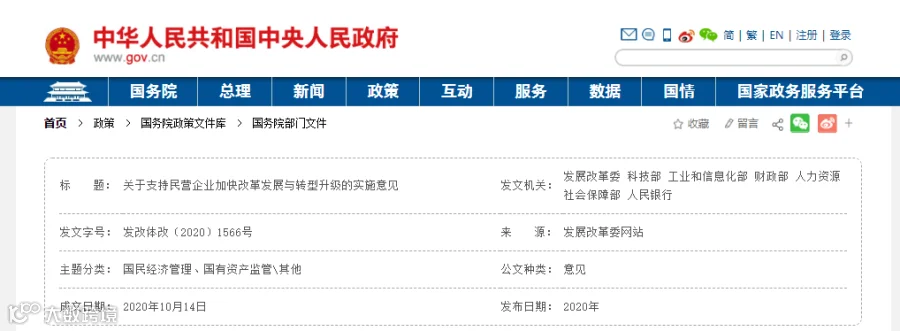 近日,国家发展改革委、科技部、工业和信息化部、财政部、人力资源社会保障部、人民银行等六部门发布《关于支持民营企业加快改革发展与转型升级的实施意见》。