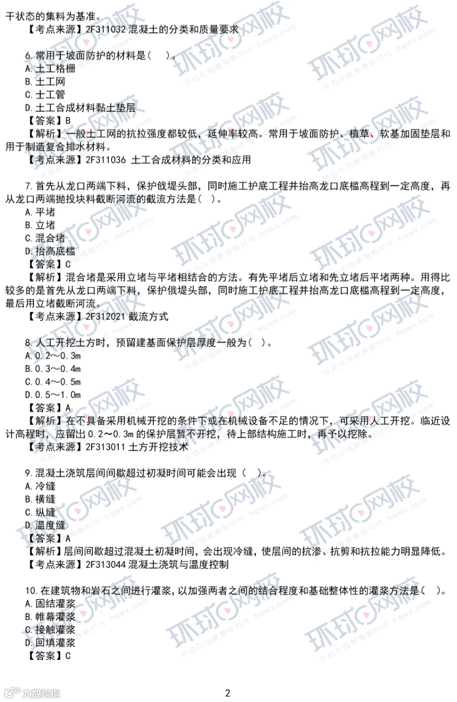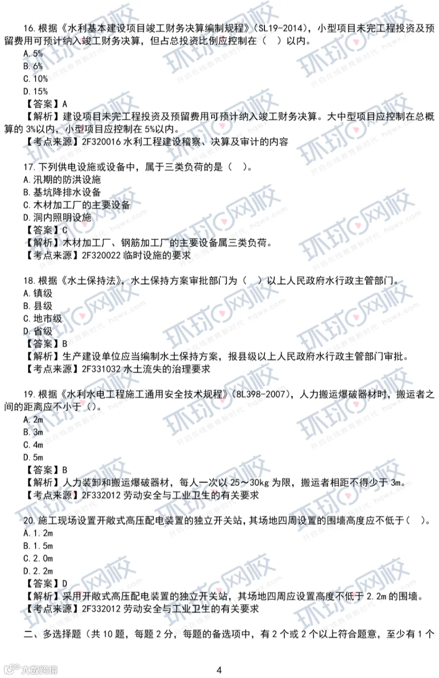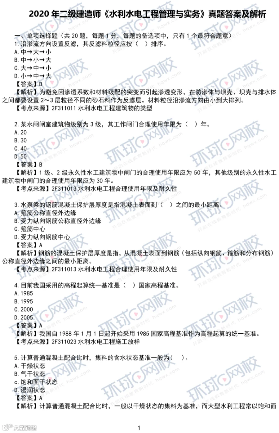 2020年水利真题答案