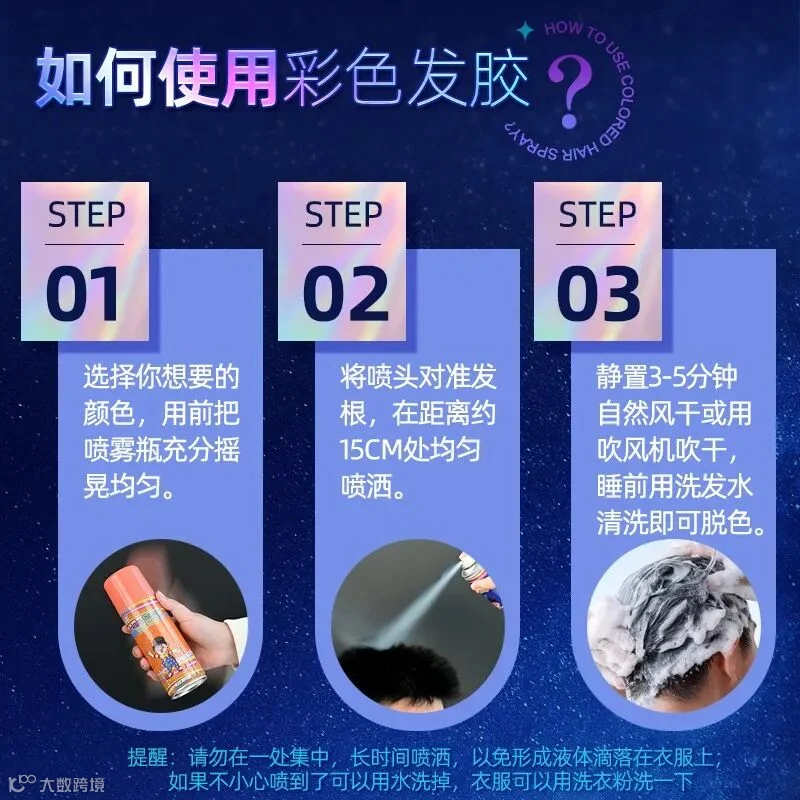 先来 DIY一次性彩色挑染!轻轻一喷就搞掂,整个过程就像用粉笔给头发画上颜色一样。想尝试不同颜色挑染也可以,整个头可以集齐7-8种颜色,妥妥的炫酷彩虹头哈,让你轻松应对各种场合。