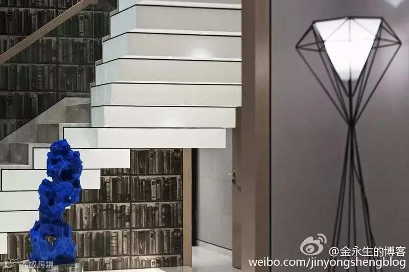 10.积木楼梯与玻璃护栏巧妙设计使空间变的井然有序,流动的金属线条联着整个房间的每个角落,把男女主人对生活的爱和老人的慈祥以及孩子的童趣紧密连接。