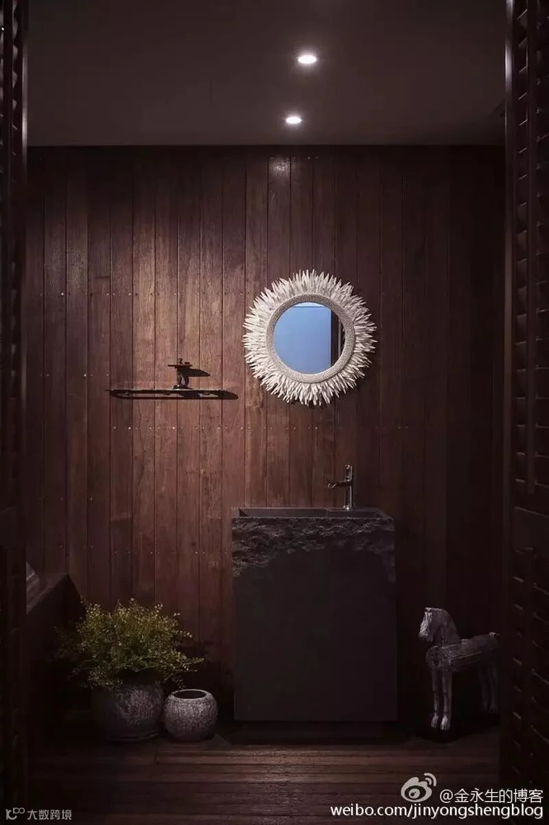 11.SPA间的设计在大面积沉稳木色中搭配一些极富童趣的装饰品,使原本严肃的空间也变的那么活泼和生动。