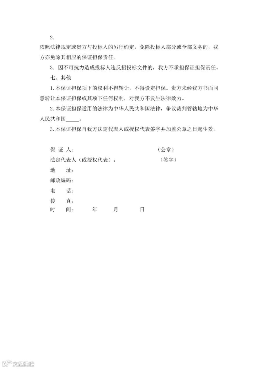 (4)声明不存在招标文件规定或我国法律规定免除申请人或我方支付责任的情形;