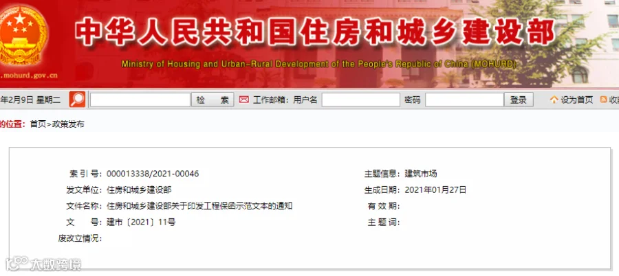 2021年2月9日住建部官网发布《关于印发工程保函示范文本的通知》,制定了《工程保函示范文本》,自2021年3月1日起执行。原《工程担保合同示范文本(试行)》(建市〔2005〕74号)同时废止。