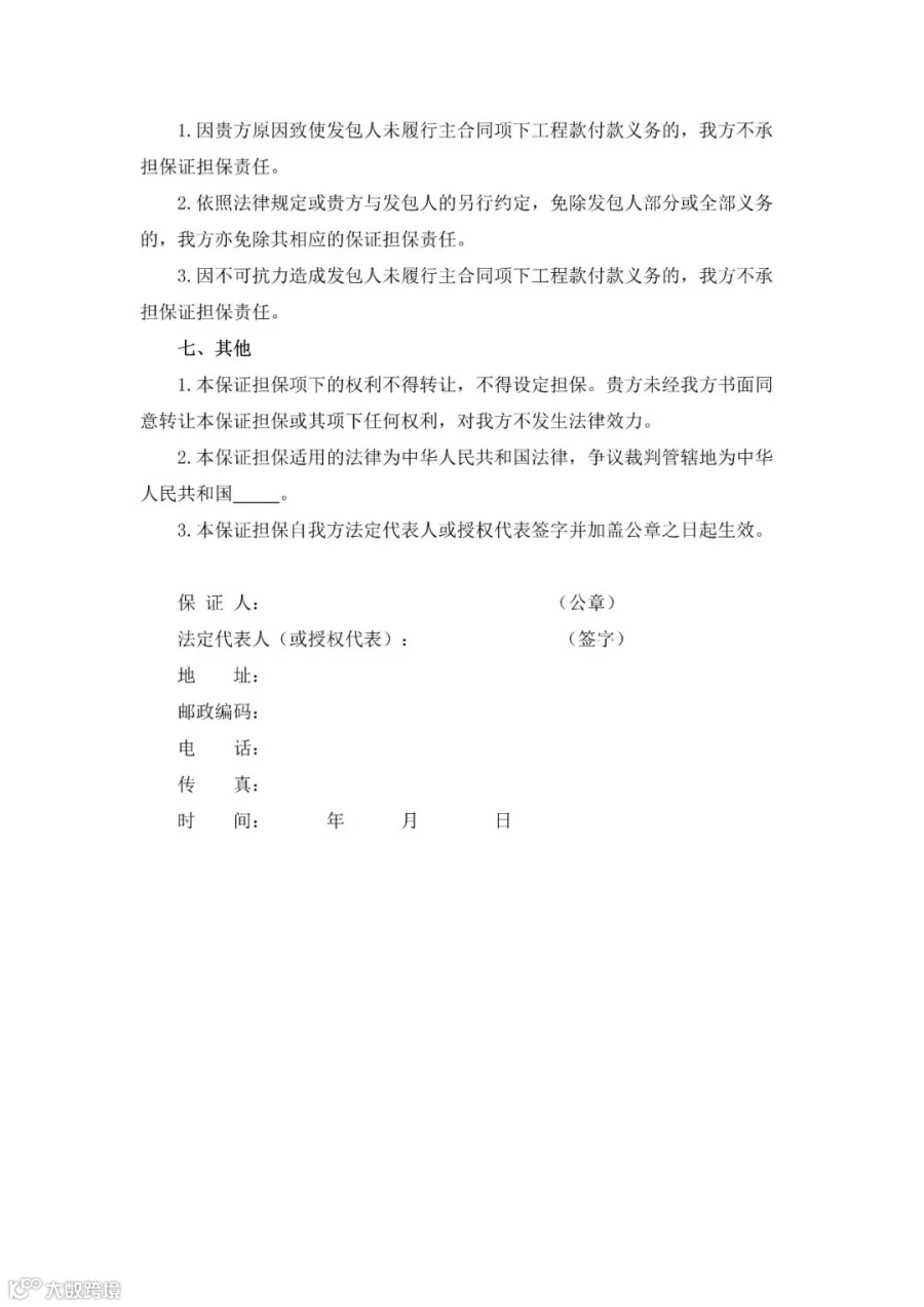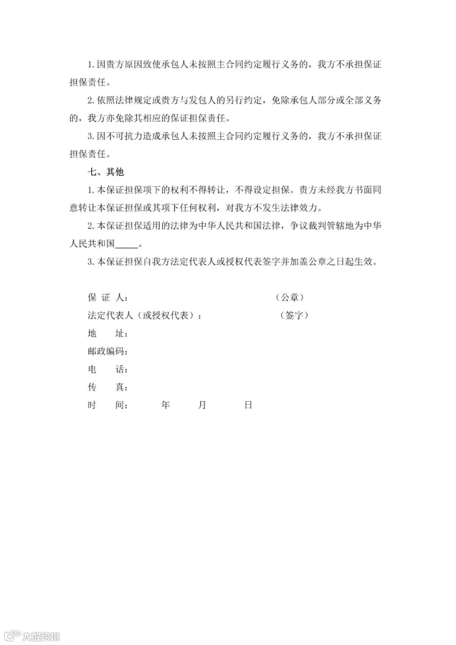 八、本保函适用的法律为中华人民共和国法律,争议裁判管辖地为中华人民共和国 。