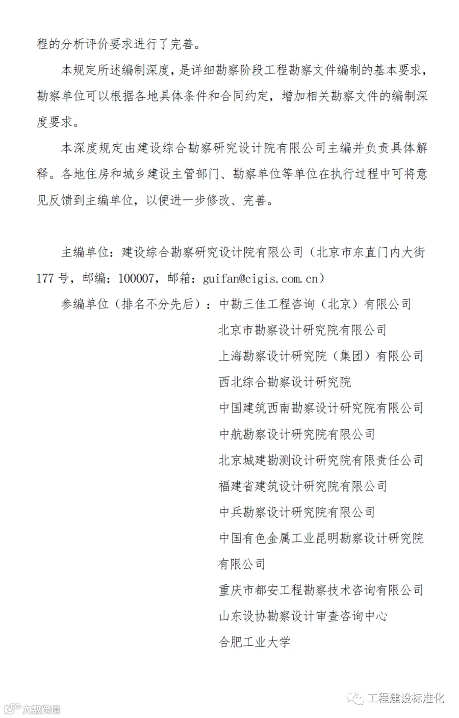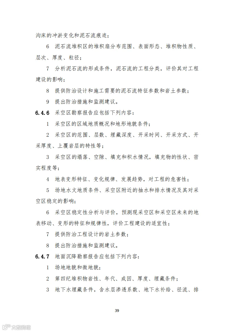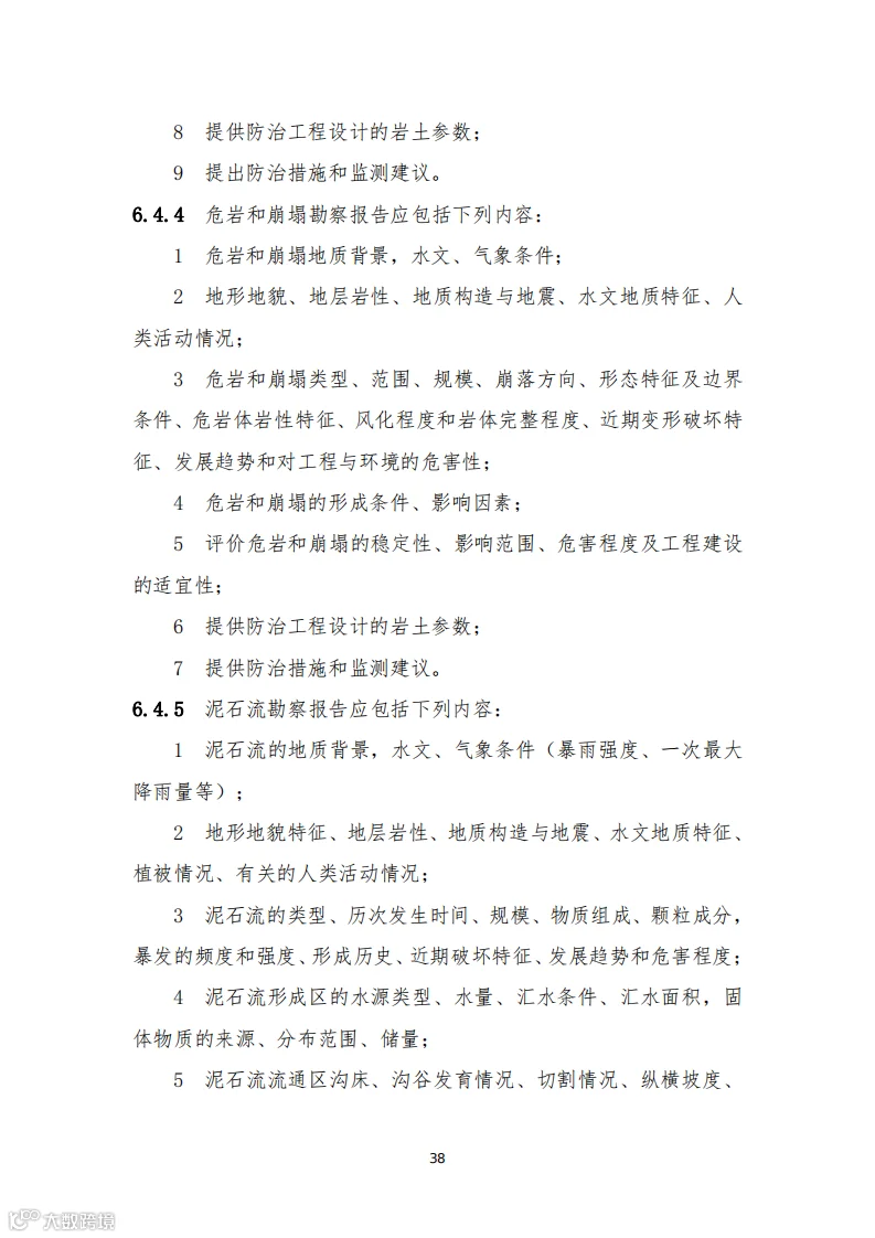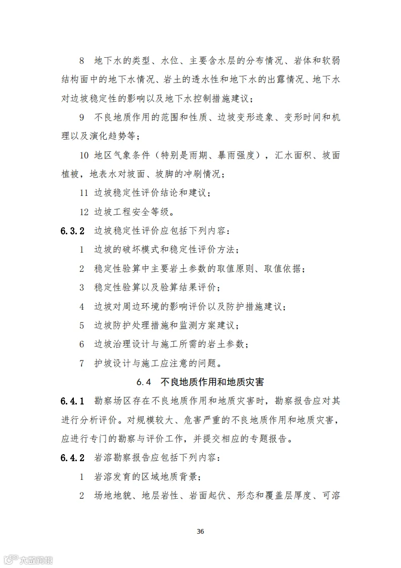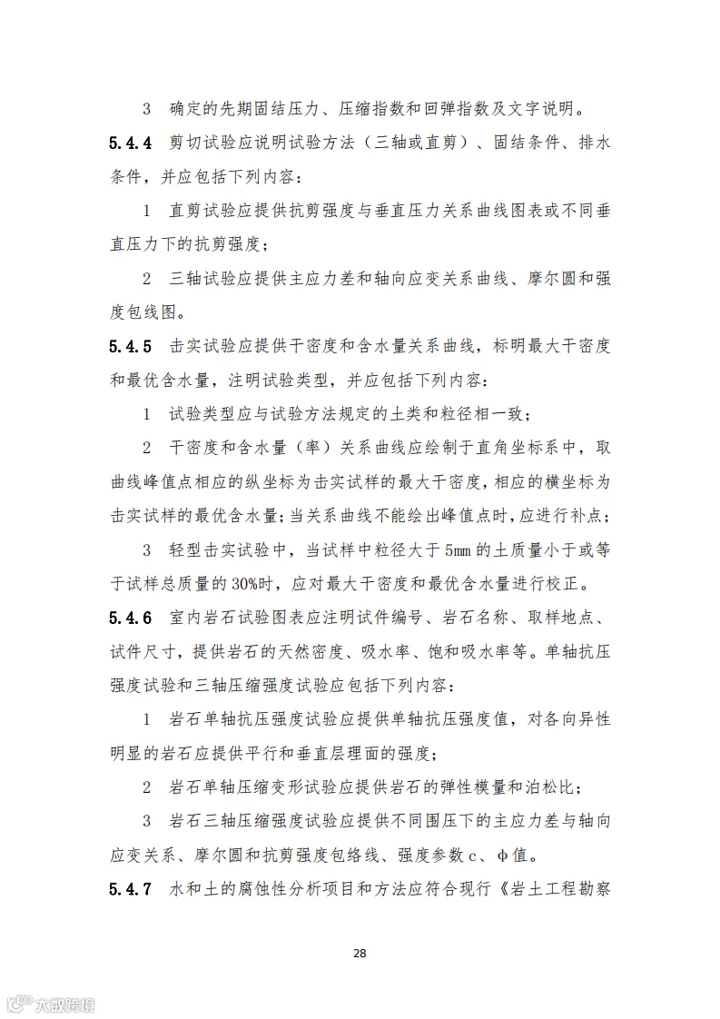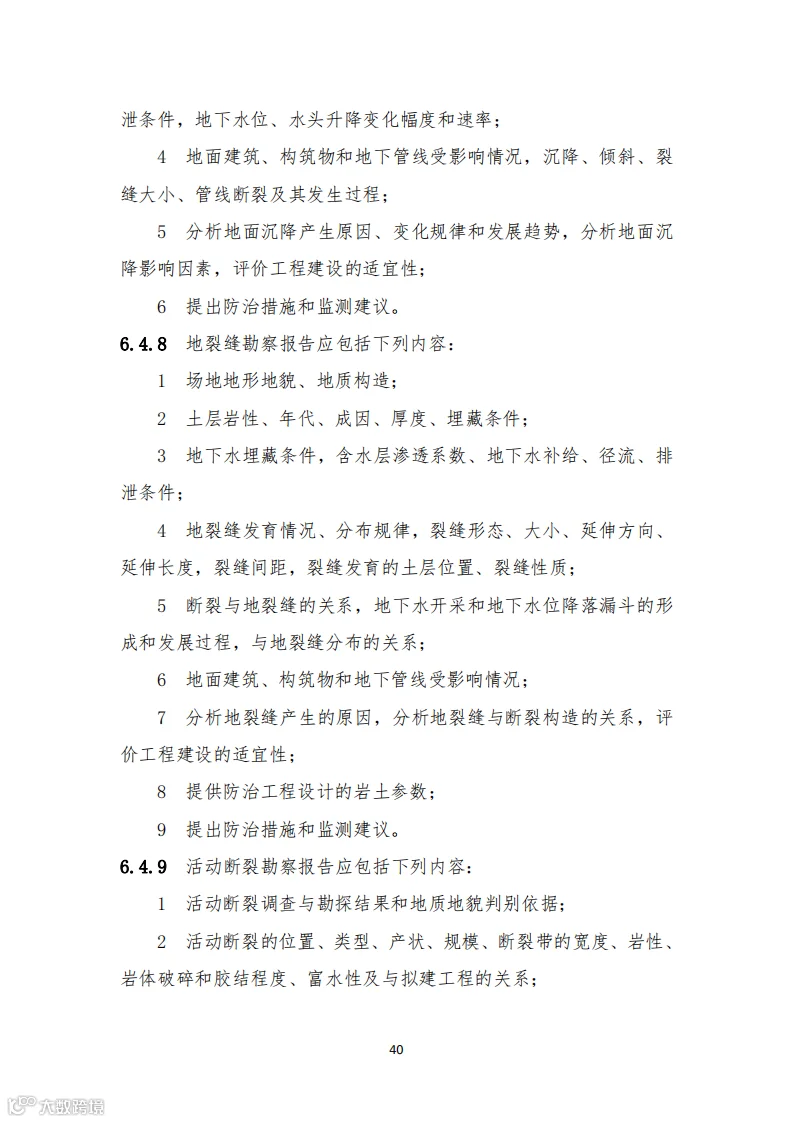 根据法规规章要求进行相应调整。如《危险性较大的分部分项工程安全管理规定》(住房和城乡建设部令第37号)自2018年6月1日起施行,其第六条规定:“勘察单位应当根据工程实际及工程周边环境资料,在勘察文件中说明地质条件可能造成的工程风险。”本次修订在4.5.1条中予以体现。