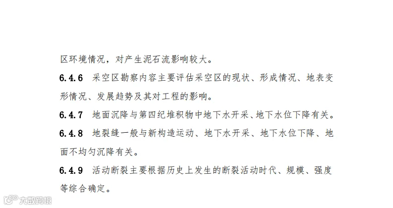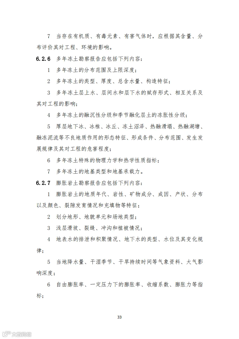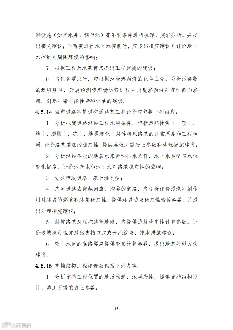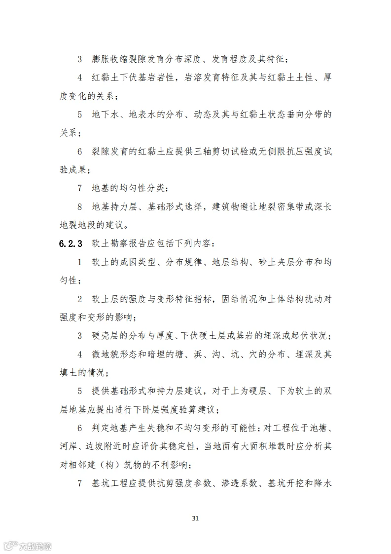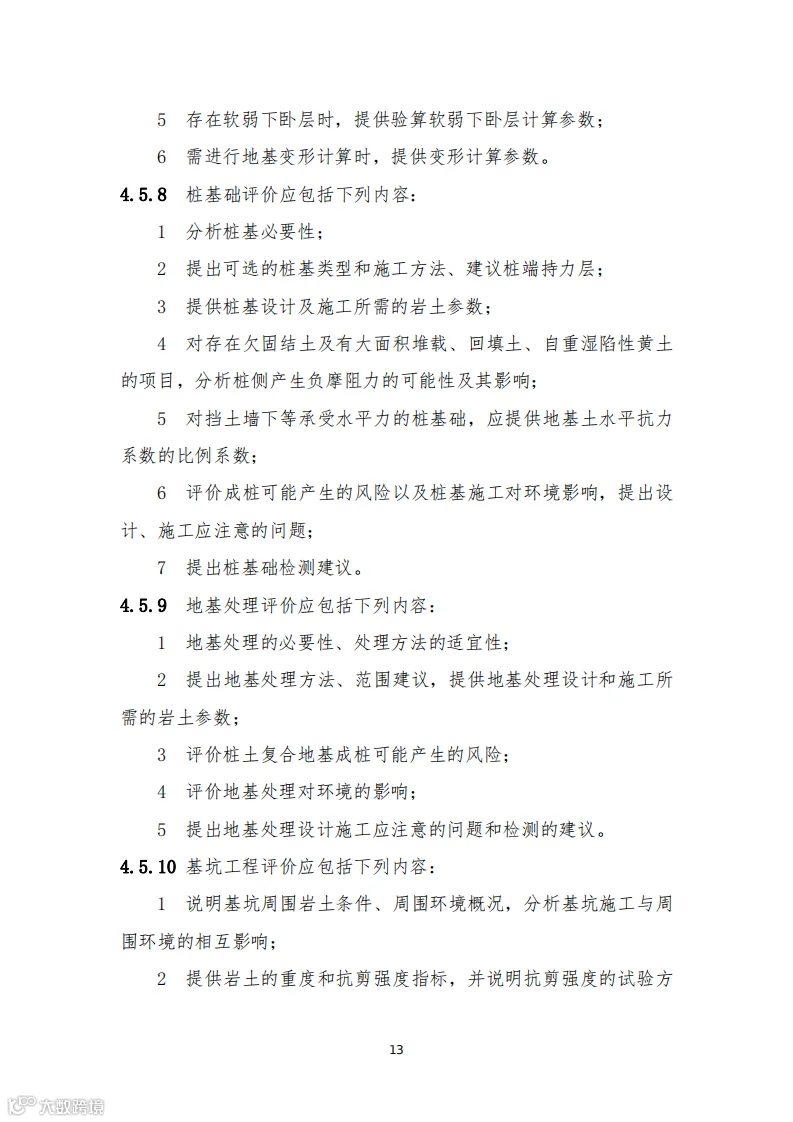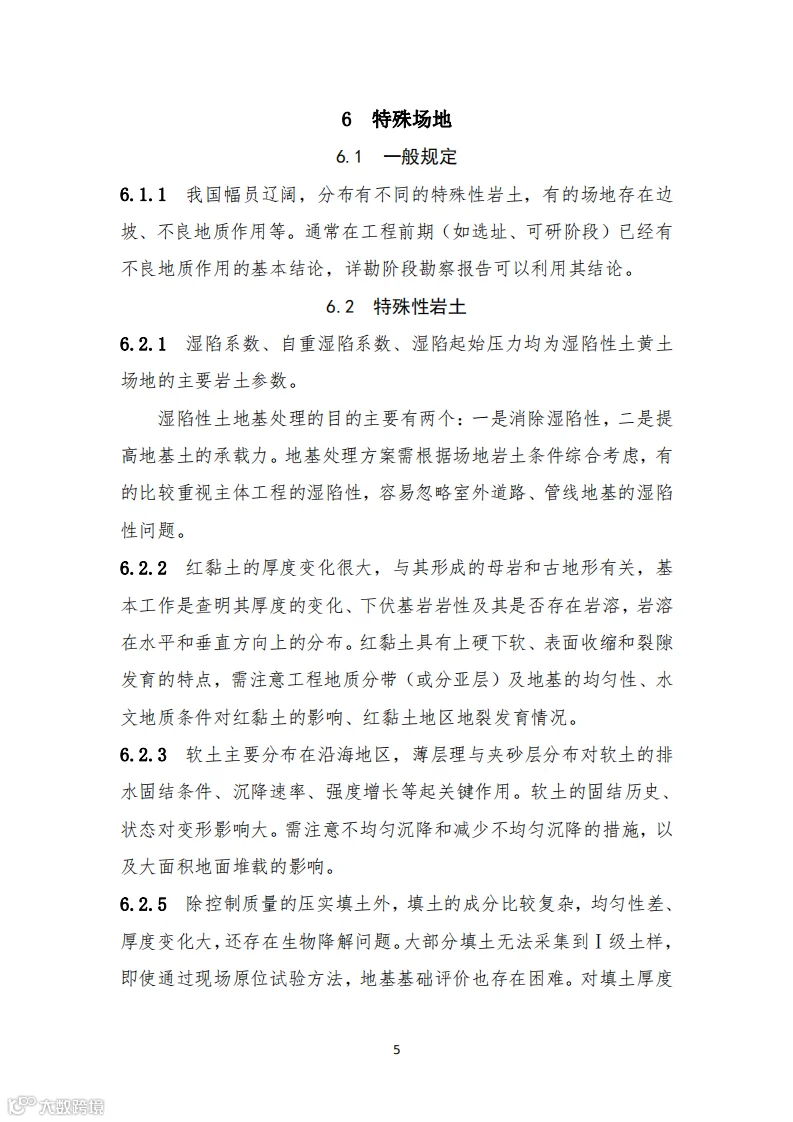 根据法规规章要求进行相应调整。如《危险性较大的分部分项工程安全管理规定》(住房和城乡建设部令第37号)自2018年6月1日起施行,其第六条规定:“勘察单位应当根据工程实际及工程周边环境资料,在勘察文件中说明地质条件可能造成的工程风险。”本次修订在4.5.1条中予以体现。
