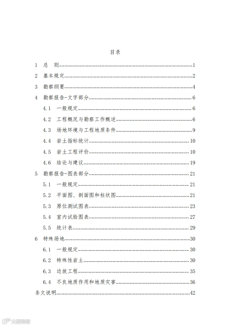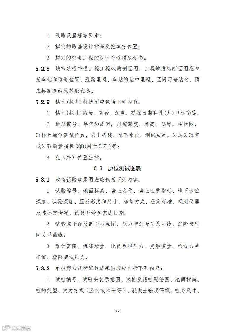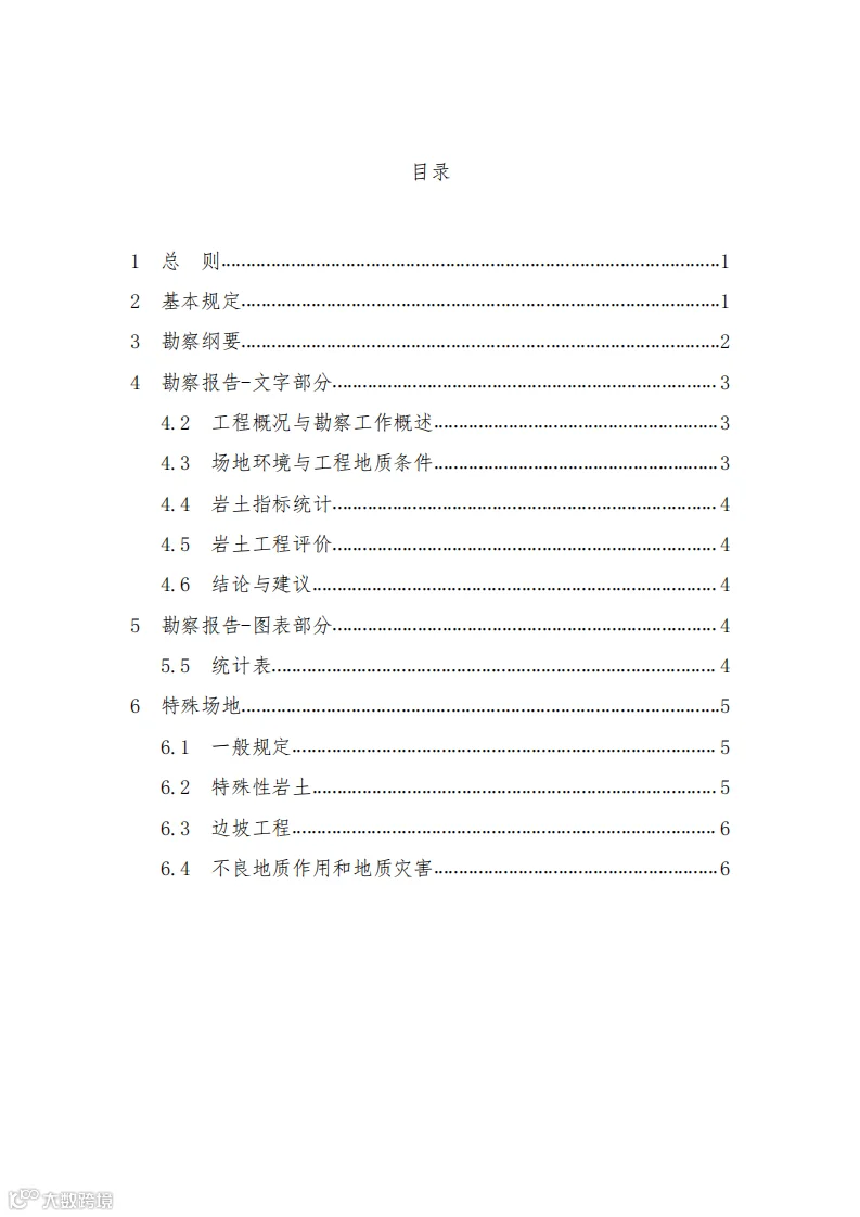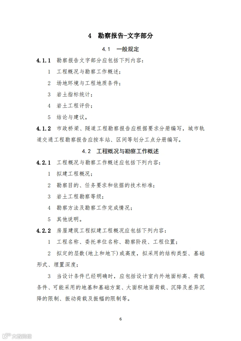 对《深度规定》(2010年版)相同、相近内容进行合并。本次修订对组成框架作了较大调整,由原来9 章调整为6章,将原“4房屋建筑工程、5市政工程、6城市轨道交通工程、8场地和地基的地震效应评价”内容合并为“4勘察报告-文字部分”。