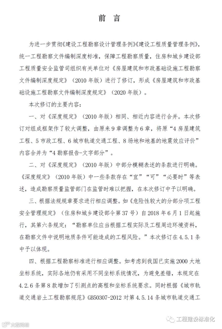 1.《房屋建筑和市政基础设施工程勘察文件编制深度规定》(2020年版)