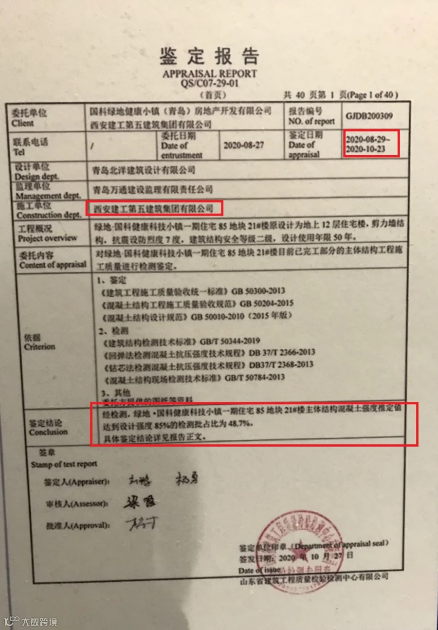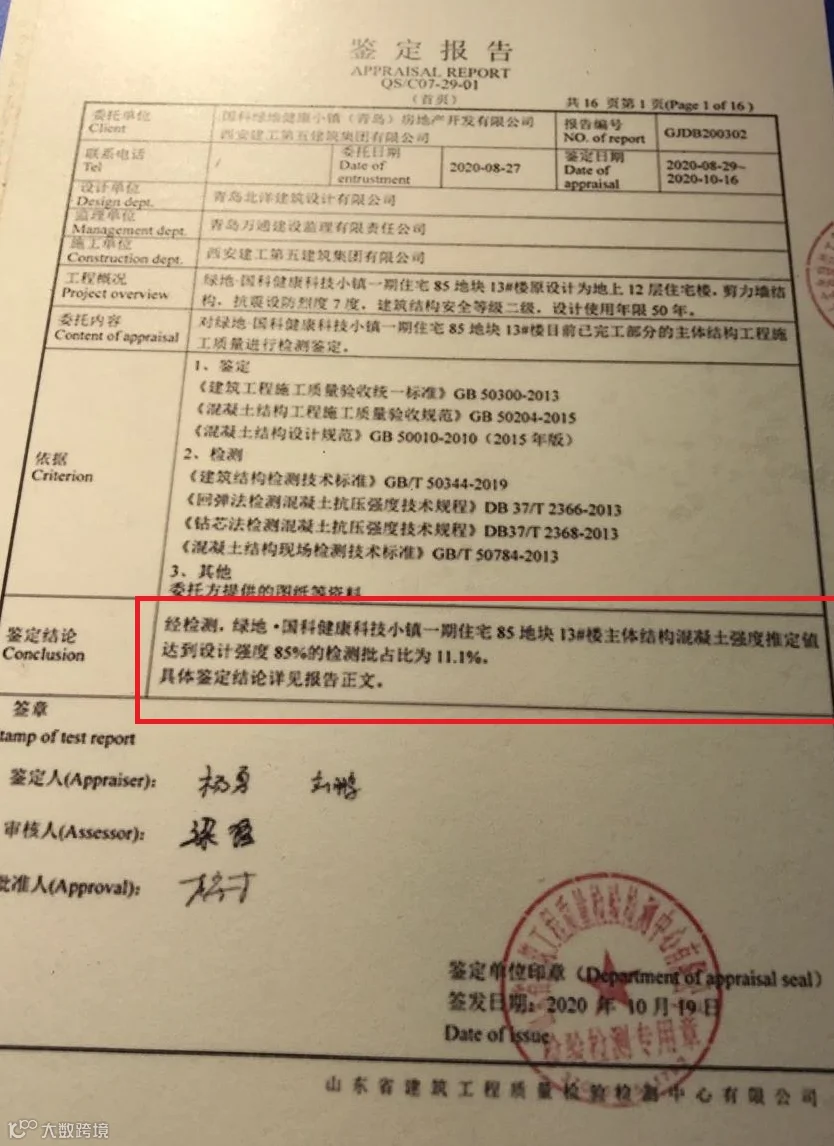 图3:21#栋主体鉴定报告