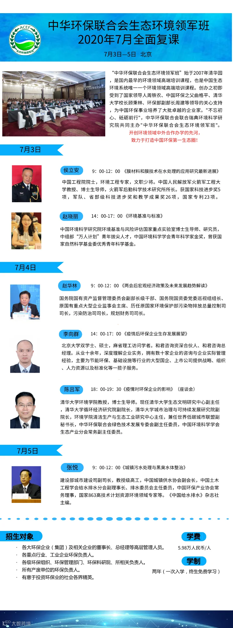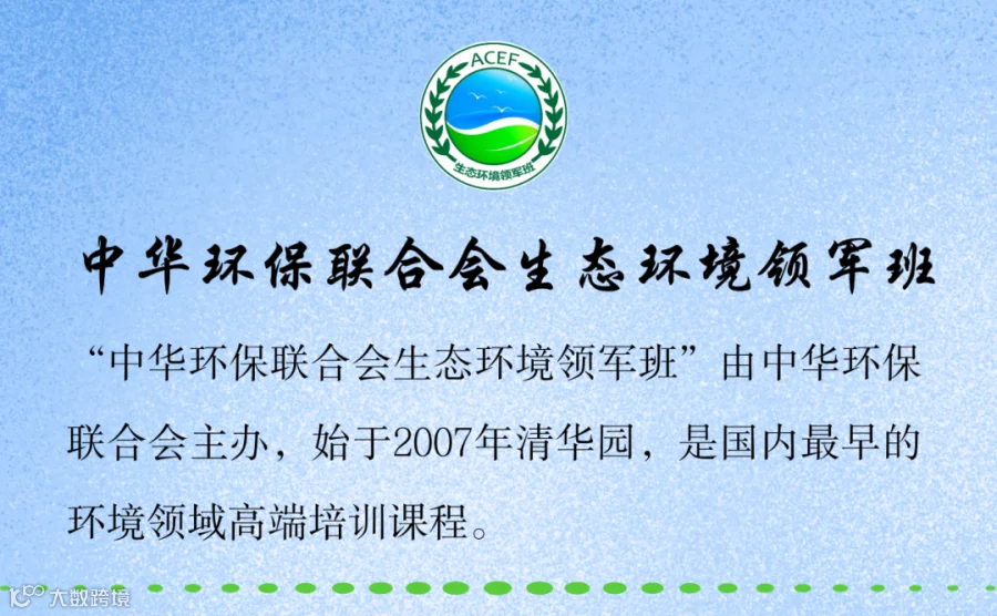 “中华环保联合会生态环境领军班”中国生态环境系统设立的唯一一个环境领域高端培训课程。