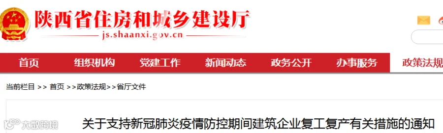 近日,陕西省住建厅发布《支持新冠肺炎疫情防控期间建筑企业复工复产有关措施》。对在疫情防控(一级应急响应)期间,支持范围内的建筑施工企业进行资金补助。