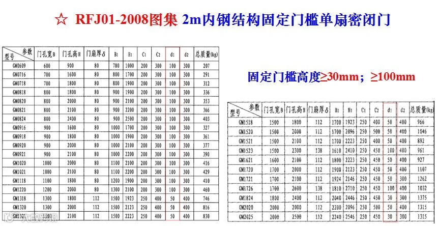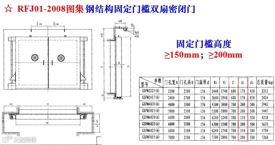 固定门槛:门槛与建筑地坪高差一般情况下应≧150mm(钢结构单扇人防门门槛≥130mm),钢筋绑扎高度宜≥250mm。