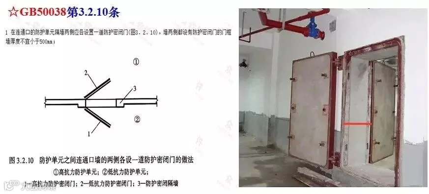 防护密闭门、密闭门、悬板活门的开启方向必须面向冲击波来的方向。人防门框应预埋在靠近冲击波的一侧,一旦方向弄错,人防门战时将不起作用。