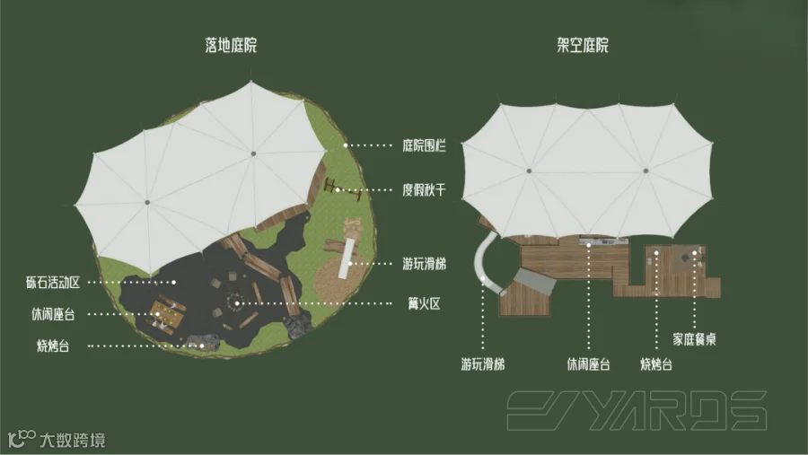 在空间布局上,科学考虑景观面呈现与客户需求,如帐篷屋配备独立庭院保障私密性。