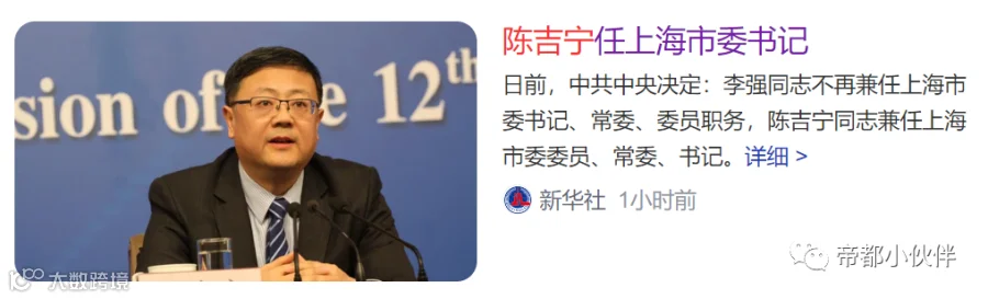 李强同志不再兼任上海市委书记、常委、委员职务,陈吉宁同志兼任上海市委委员、常委、书记。