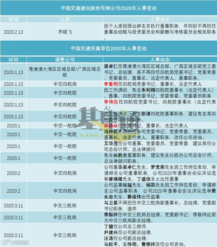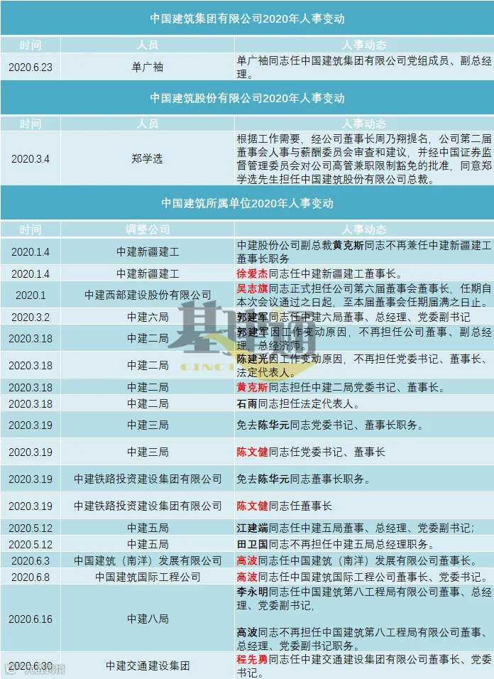 我们知道,建筑央企领导调整是常事,原因可能是“工作调整/调动”、“另有任用”、“改任”、“交流任用”、“工作另行安排”、“退休”等,今天我们来整体盘点盘点五大建筑央企上半年领导调整情况。