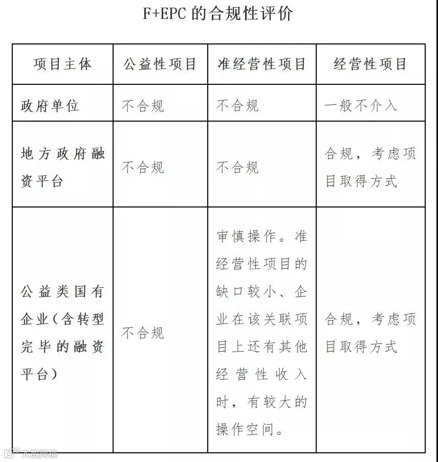 而政府方作为项目业主采用F+EPC的模式实际上属于地方政府以建设-移交(BT)方式或以委托代建等名义变相举债,因此显然不合规。今年颁布实施的《政府投资条例》明确指出政府投资项目不允许由施工单位垫资建设,从法规上进一步明确了政府投资项目不再可以采用F+EPC模式操作。