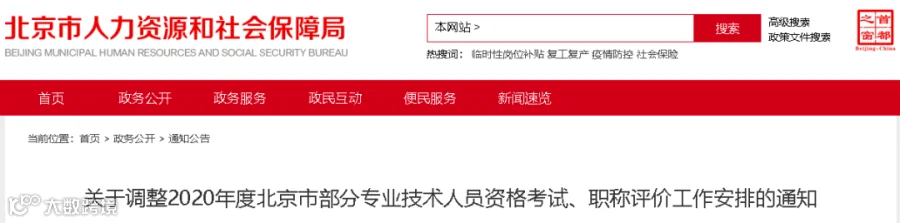 为贯彻落实“放管服”改革要求,进一步减少人才重复评价,降低疫情防控期间人员聚集风险,保障全市职称评价工作顺利进行,在《关于开展2020年度北京市职称评价工作的通知》(京人社事业字〔2020〕1号)安排基础上,决定对2020年度本市部分专业技术人员资格考试、职称评价工作进行调整,具体事项通知如下: