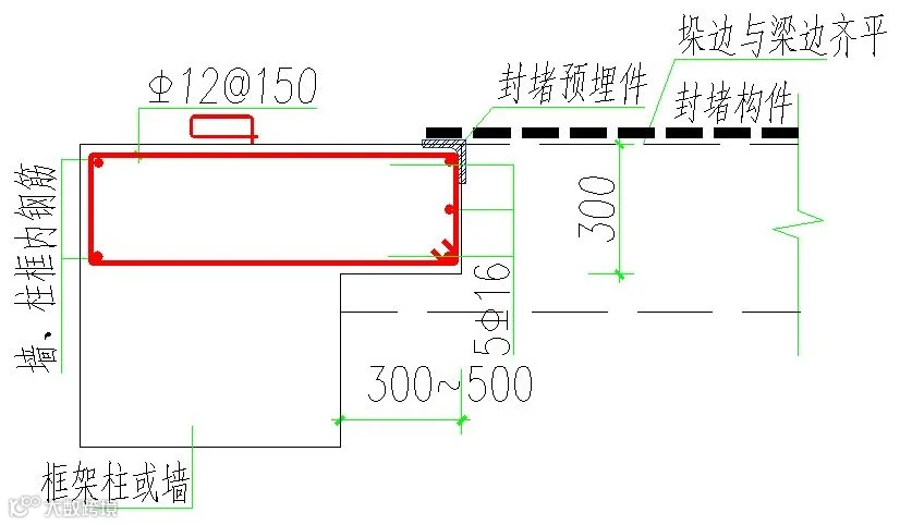 1)人防楼梯水平封堵的设置,其封堵板垛要求沿楼梯四周均设置,确保封堵梁定位可靠。