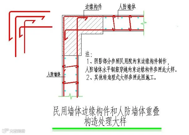 2、民用院剪力墙与人防墙体重合时的钢筋处理是否正确