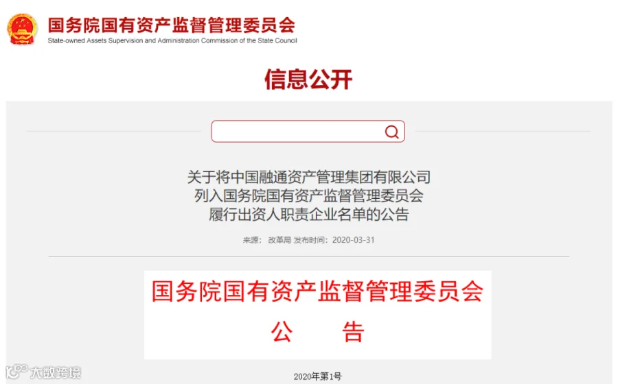 3月31日,国务院国资委发布公告:经批准,中国融通资产管理集团有限公司(简称“中国融通集团”)列入国务院国有资产监督管理委员会履行出资人职责企业名单。