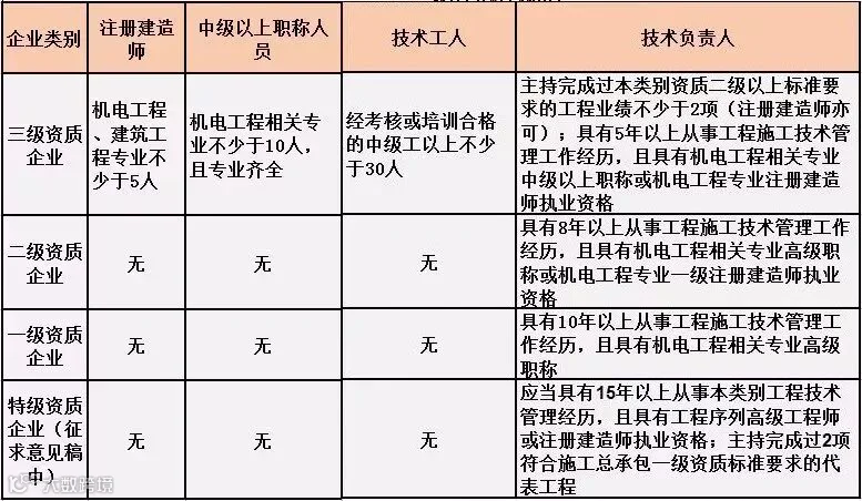 (2)技术负责人具有5年以上从事工程施工技术管理工作经历,且具有结构专业中级以上职称或建筑工程专业注册建造师执业资格;建筑工程相关专业中级以上职称人员不少于6人,且结构、给排水、电气等专业齐全。