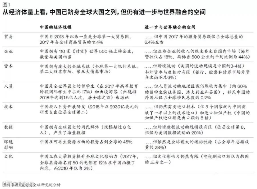 虽然中国作为全球大国,拥有庞大的经济体量,但中国经济尚未全方位实现与世界融合。
