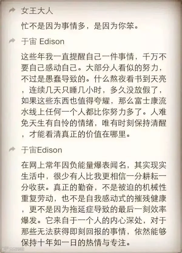 所以,希望每个人在创业之前,都能够重视对战略的思考,并勤于规划;而非只是在战术上的勤奋。创业初期,战术上的努力也是非常重要的,否则就变成了空想和空谈,只是要注重好时间的分配。