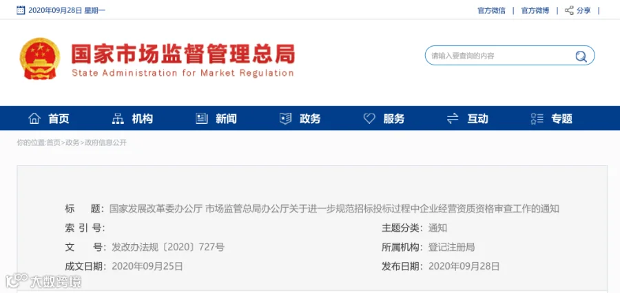 关于进一步规范招标投标过程中企业经营资质资格审查工作的通知