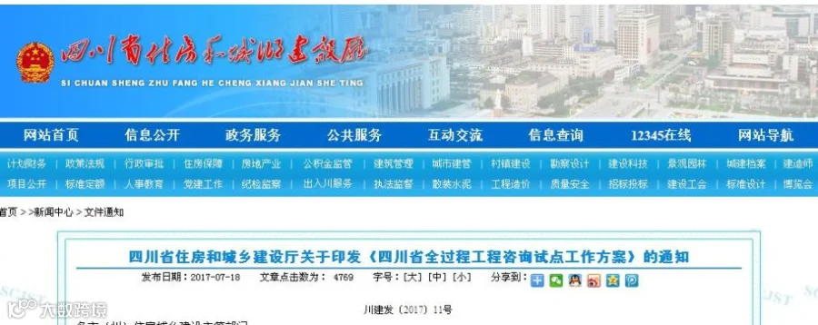 导读:四川省住房和城乡建设厅关于印发《四川省全过程工程咨询试点工作方案》的通知