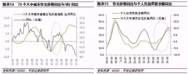 个人住房贷款余额同比与房价同比的走势也相当一致。房价上行的预期提升了居民的购房意愿,并带来个人住房贷款余额的上升;而居民旺盛的购房意愿则进一步推升了房价的上行预期,两者相互强化。从数据上看,本轮房价周期在2015年初的启动与当前的见顶回落,都与个人住房贷款增速的趋势相一致。