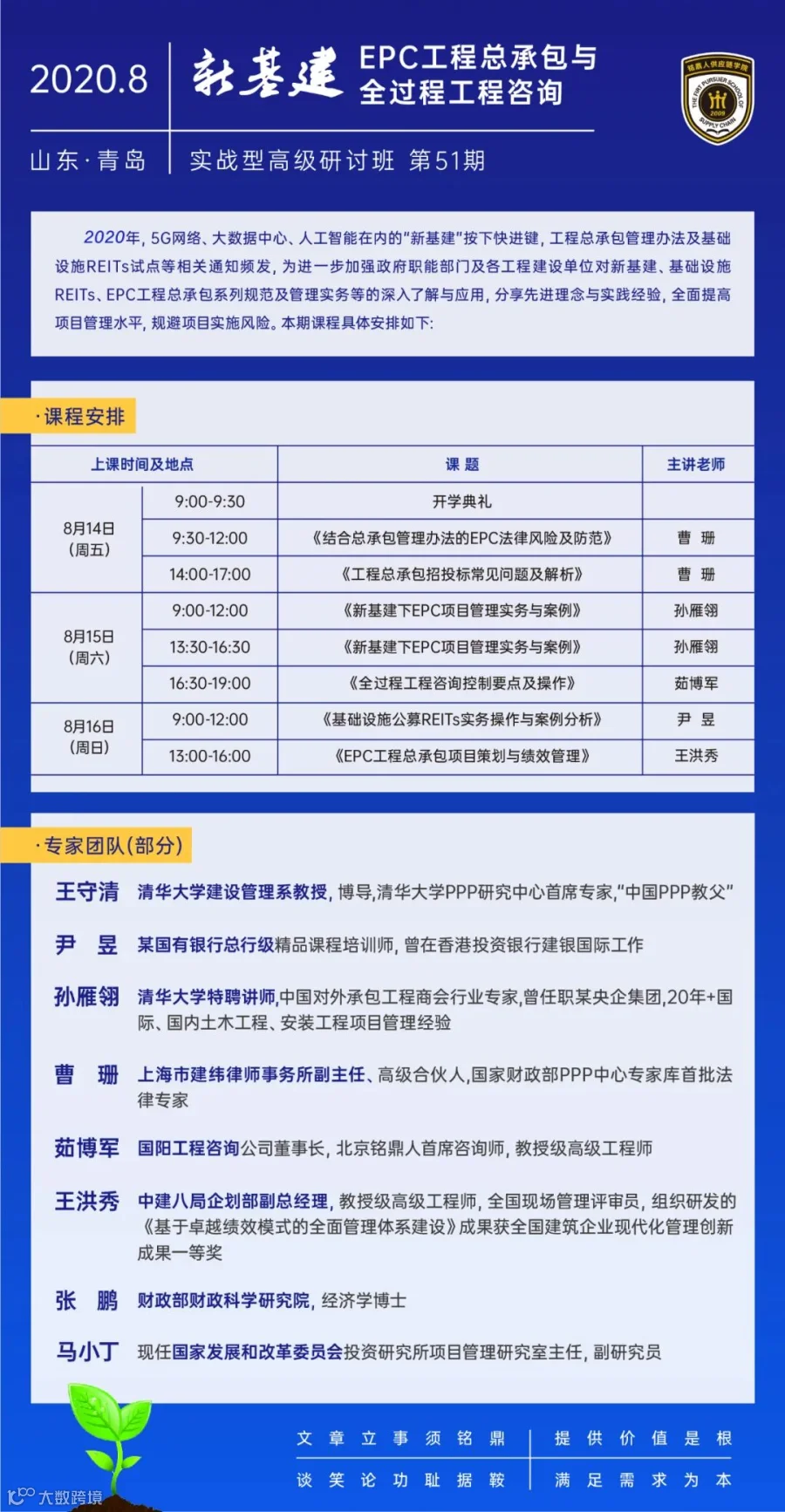 8月14-16日 青岛|关于举办EPC工程总承包与全过程工程咨询—实战型高级研讨班 第51期【开课通知】