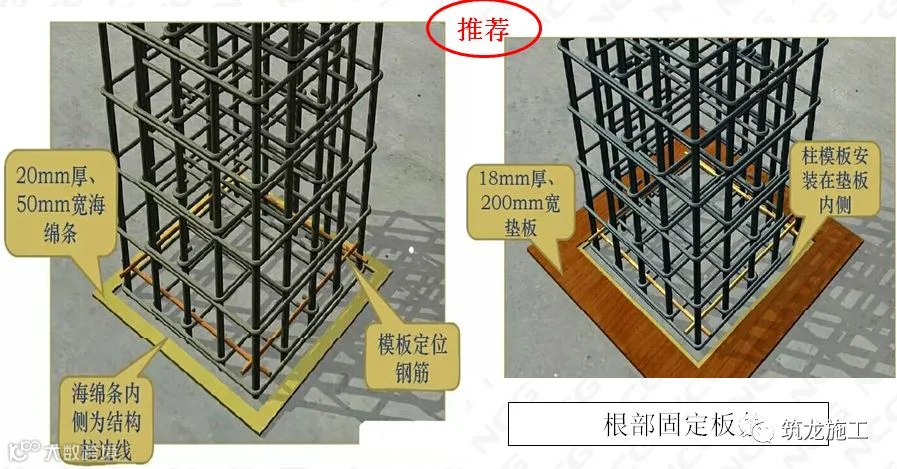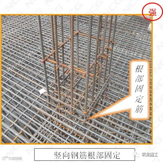 (2) 柱子和剪力墙等竖向构件钢筋应采用梯子筋控制主筋位置。竖向钢筋上端应有限位措施。