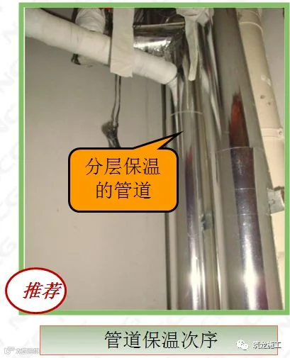 1、保温施工过程中,应注意管井中的保温作业应从上向下进行,部分干管是双层保温外壳的,应先薄后厚进行,保温层外防潮层应包裹严密 。