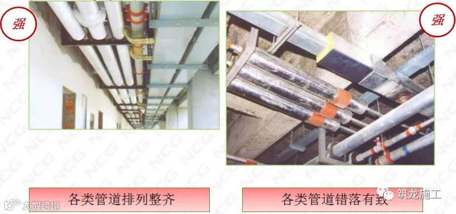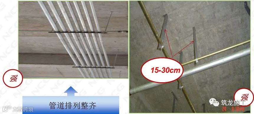1、 预留套管排列整齐、间隙均匀,伸出混凝土墙面应符合规范要求。