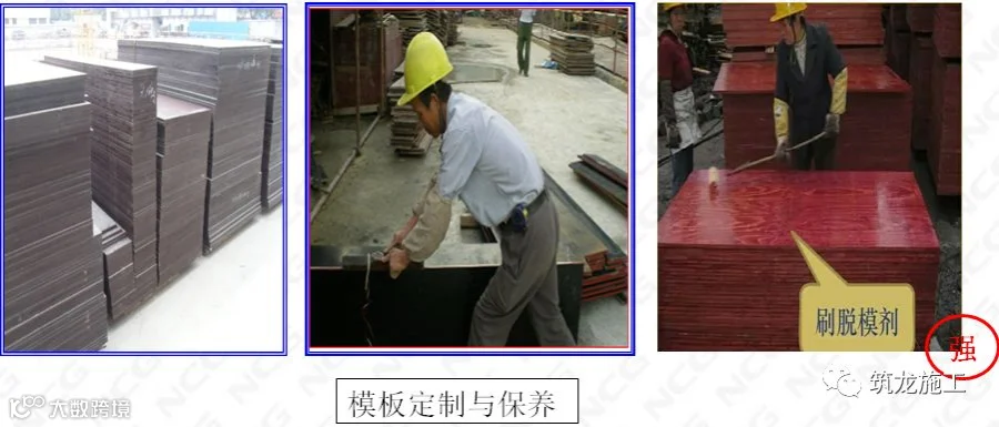 固定模板的背衬宜选用不小于40×90 mm的方木。模板厚度不小于15mm。
