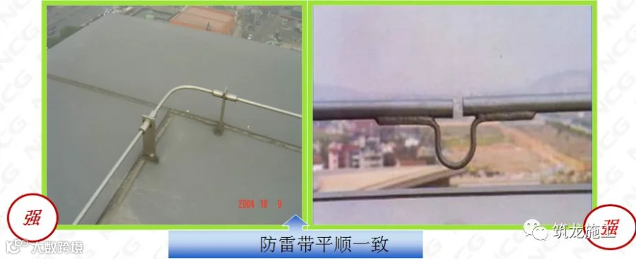 2、防雷带应平直,弧度不得形成90度死角。伸缩处连接筋应做成弧度。