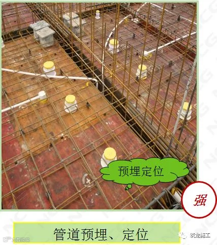 厨卫间及阳台带止水翻边的预埋管件安装前,应预先在模板上测量定位;同一功能的相邻预埋件固定位置应在一条直线。