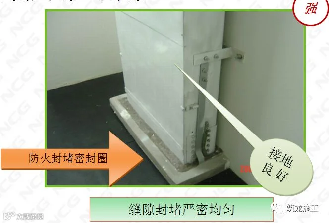 1、电缆桥架穿楼板处将缝隙用防火胶泥封堵严密,防火胶泥沿桥架外侧形成密封圈。沿电缆井及电缆桥架通长敷设-40×4热镀锌接地扁钢,电缆桥架、母线槽及支架均与接地母线连接。