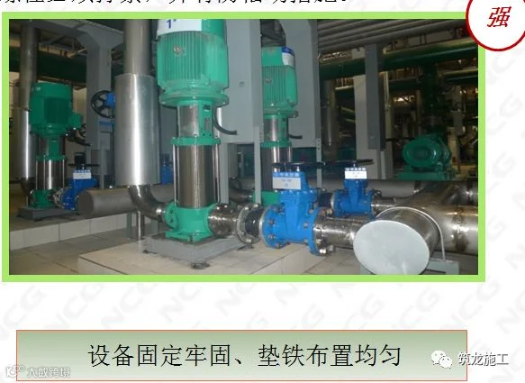 设备的混凝土基础必须进行质量交接验收,合格后方可安装;用地脚螺栓固定的制冷设备或制冷附属设备,其垫铁的放置位置应正确、接触紧密;螺栓必须拧紧,并有防松动措施。
