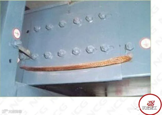 电缆桥架连接应采用铜编织带,不同大小桥架选择编织带的截面积应满足要求,接地标识完整。