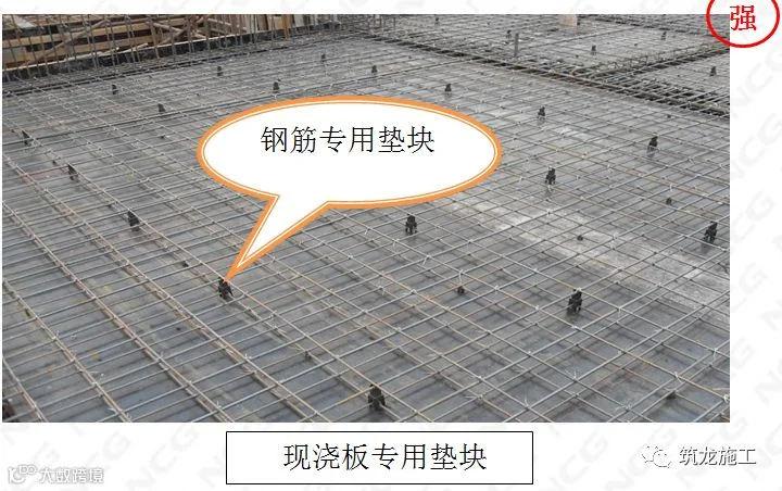 1、当楼板分布钢筋直径小于10mm时,钢筋保护层采用砼、塑料或钢筋支架间隔件。不得使用现场制作的砂浆垫块。楼面钢筋垫块间距:当钢筋直径6.5mm时,不大于500mm。钢筋直径8mm时,不大800mm;钢筋直径10mm及以上时采用砼或金属间隔件间距,不大800mm;悬挑板位置保护层间距不大于500mm。
