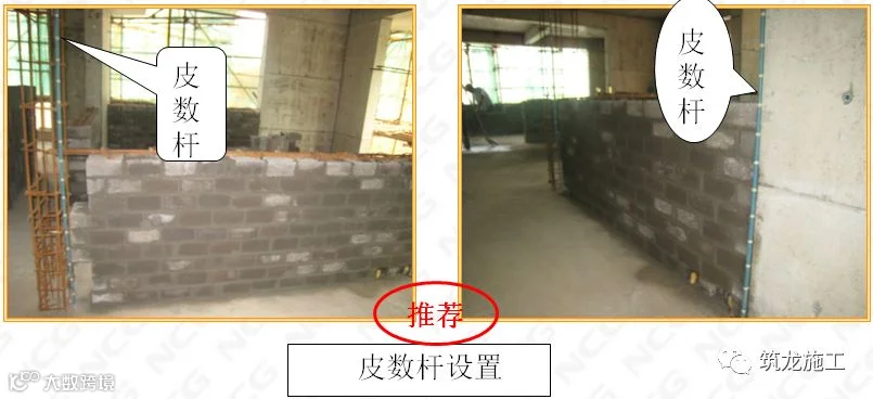 砌筑前应先摆砖,以确定竖向灰缝及组砌方式及门窗洞口尺寸。每道墙两端均应设置皮数杆 。
