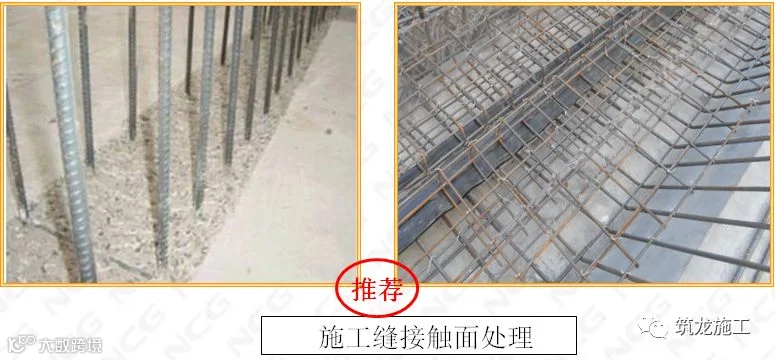 施工缝、后浇带的浮浆、浮石及垃圾应认真清除,浇水湿润后,先浇适量去石砂浆,再浇捣混凝土 。