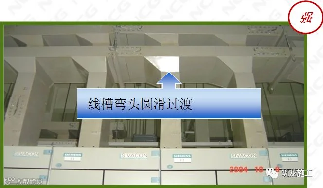 2、 桥架和支架安装前应拉线或弹墨线,定出走向和标高控制线。桥架进出线管应使用机械开孔器开孔,转弯和交叉等必须圆滑过渡。
