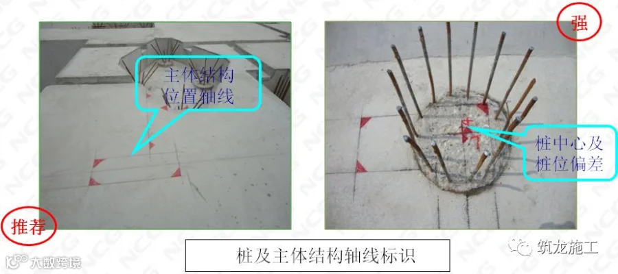 建筑物出±0.00后,所有外墙大角处均应用红油漆将标高、轴线清晰标出,每层应及时弹出50线或1m线 。