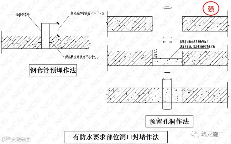 3、预留套管厚度、防水翼环钢板的厚度、宽度应符合规范要求,焊渣清理干净。