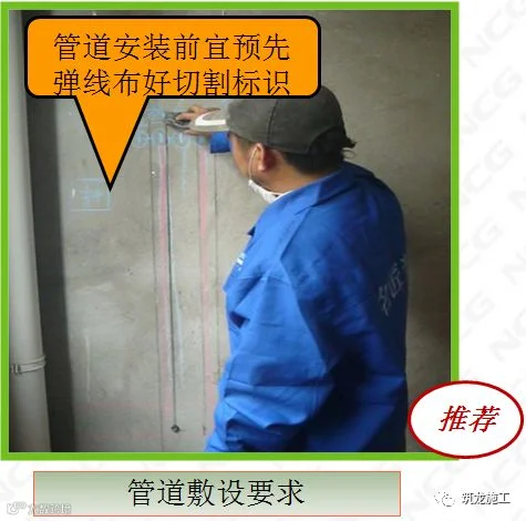 1、管道采用塑料、塑料复合管材或金属管暗敷设的,宜先进行弹线,做好切割标识。