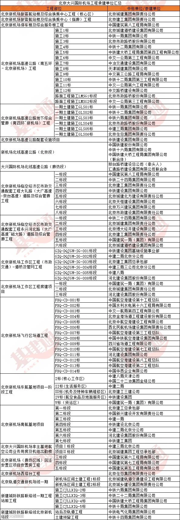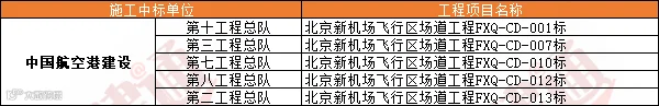 另外飞行区场道工程除了中国电建、中国交建、中国中铁子公司参建以外,主要的承建工作还是由中国航空港建设公司下属的工程总队完成。
